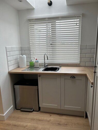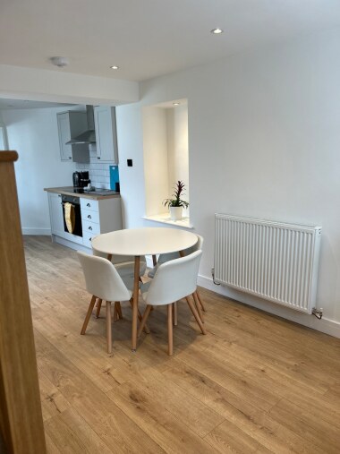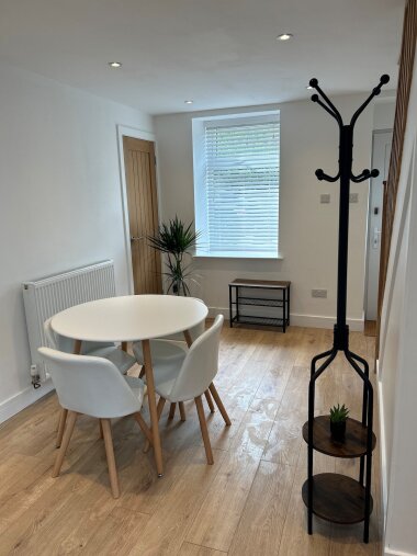 Downstairs consists of the kitchen, bathroom, dining room and one double bedroom. Upstairs consists of the living room and one double bedroom.